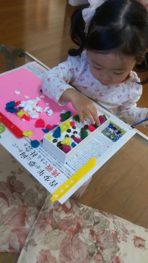 粘土を使い「どんぐりケーキ」を作って遊んでいましたよ。